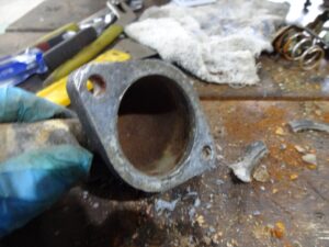 サーモスタットは完全に固着して一体化してたので、ドライバーとニッパーとペンチ使ってもぎ取ります。