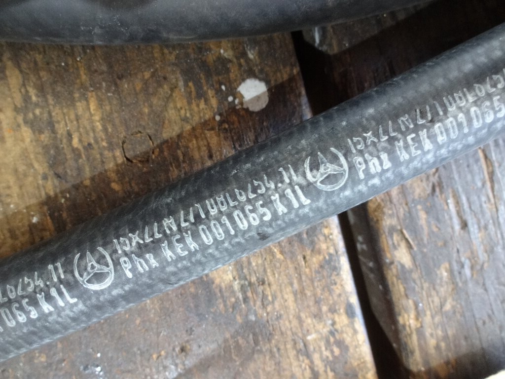 少し細くて長いのはメルセデス純正の冷却水ホースでした。良く見ると15X22って記載が見えるので、内径15ミリ外径22ミリみたいです。