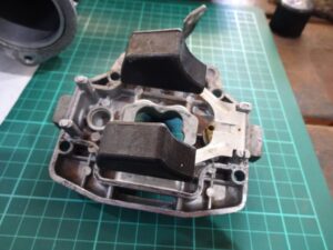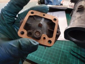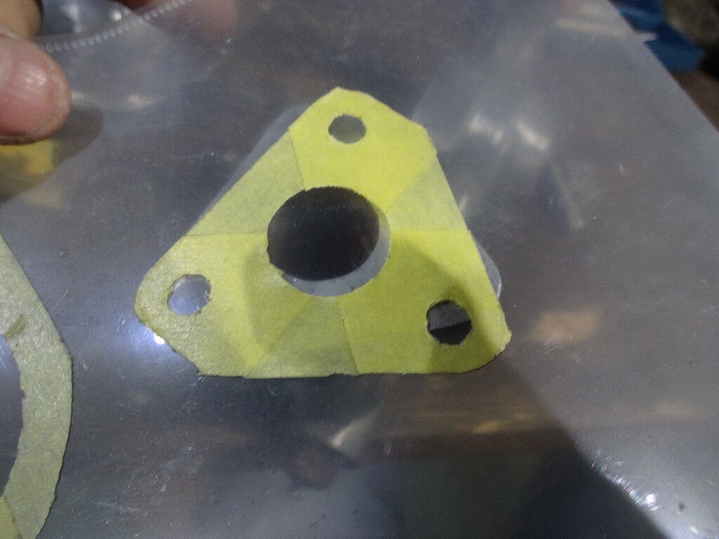 引き続きエンジンと繋がる部分のハウジングのガスケット切り出します。