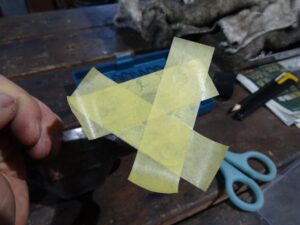 とりあえず型紙の元は出来上がったので、後はこのマスキングテープに合わせて切り抜けばOKです。