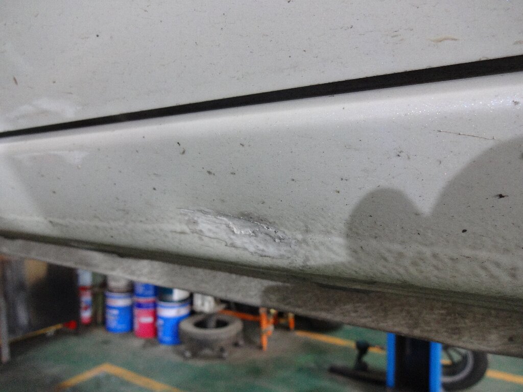 サイドシルに凹みあったのね。補修ペイントされてるから既知の凹みだと思います。スッカリ記憶から消え去ってたのかな???