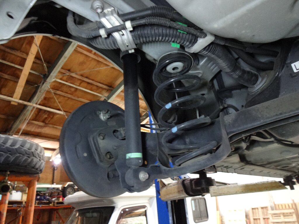右リアのショックは確か抜けてたハズで、以前オイルが漏れ滲んでたのですが、完全に抜け切ったみたいです。