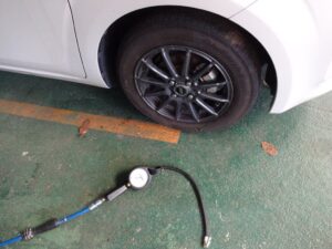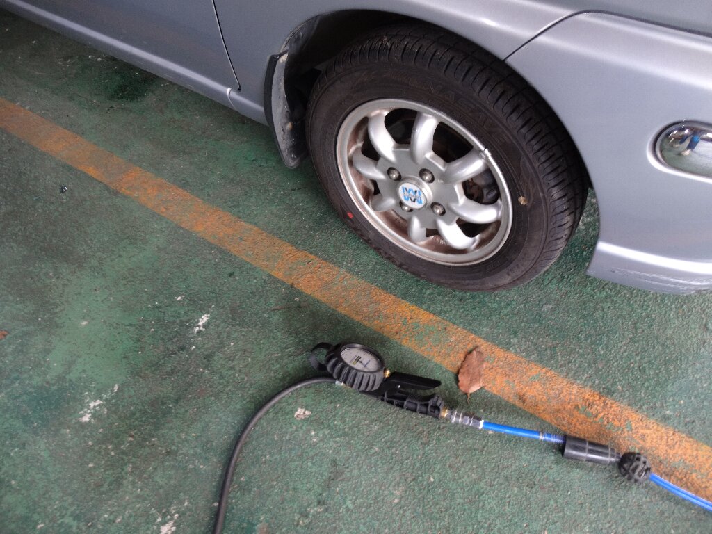 リフトから下ろしてから、ホイルナットをトルクレンチで締めて、エアチェック済ませました。