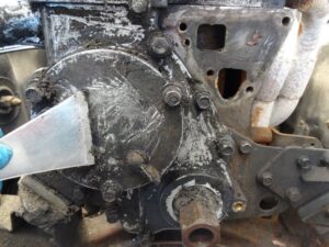 というのも、このエンジン前側が油の沁み込んだホコリが固まってコテコテになってるのです。