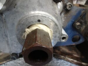 ちなみにクランク軸の部分にはエンジンオイル含ませたウエスを巻き付けて詰め込んでたのですが、先ほどの一連の洗浄作業で軽油やパーツクリーナーが掛かったと思うので、新しいウエスにエンジンオイル含ませて巻き直しました。