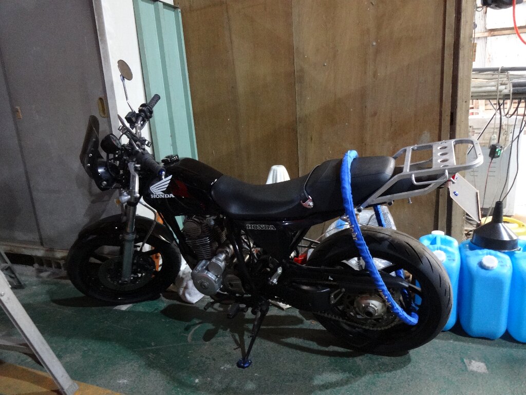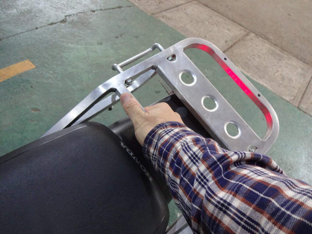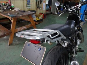 無事キャリア持ってリアを振れる様になりました。壁際とかに車体を寄せるのに持つ場所が無かったのよ。。。