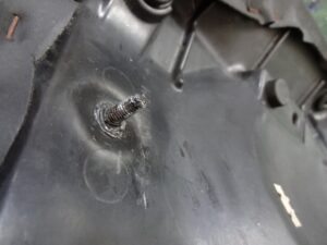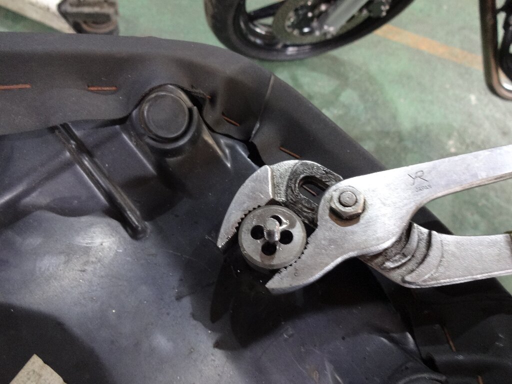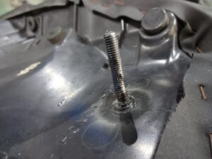 そもそもココのシートボルト自体強度的に頼り無いので、フレーム側は別途ボルトナットで留めるとして、シート側のボルトは切り飛ばしてしまいました。
