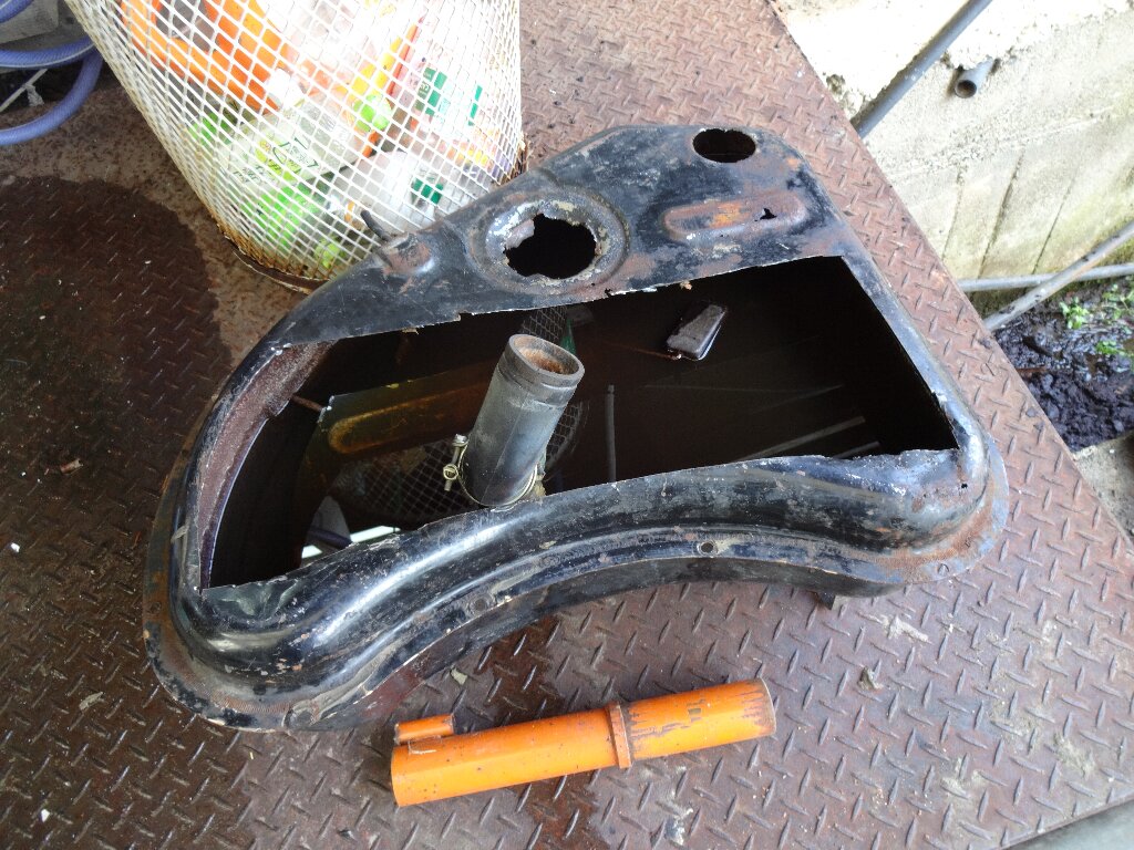 切開して汚泥を取り除いて錆取り剤を入れたベレットのガソリンタンクですが、未だコチラの鎮座しております。