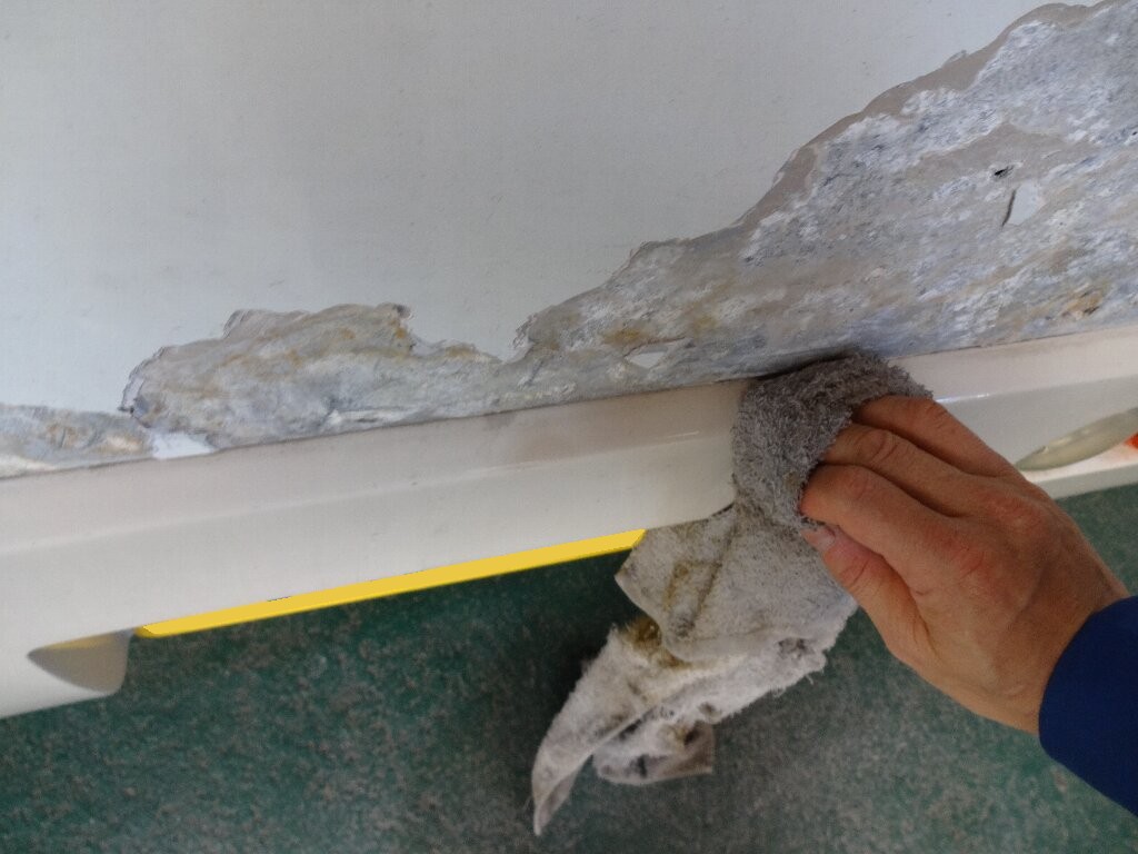 テントむしの剥がしたカサブタ跡をコーキングで埋める
