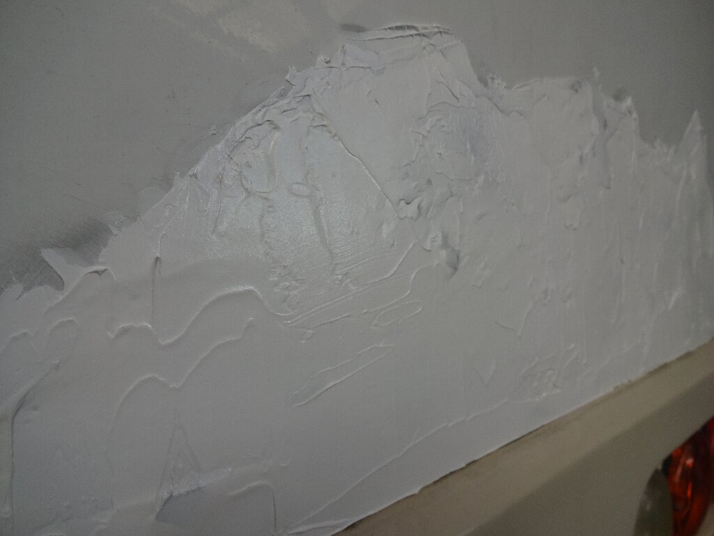 そして変性シリコンコーキングを塗り付けてから、パテへら使ってシゴキ入れ&均しました。