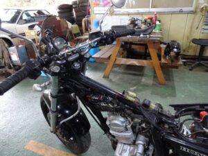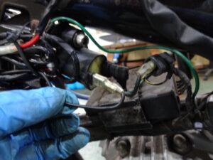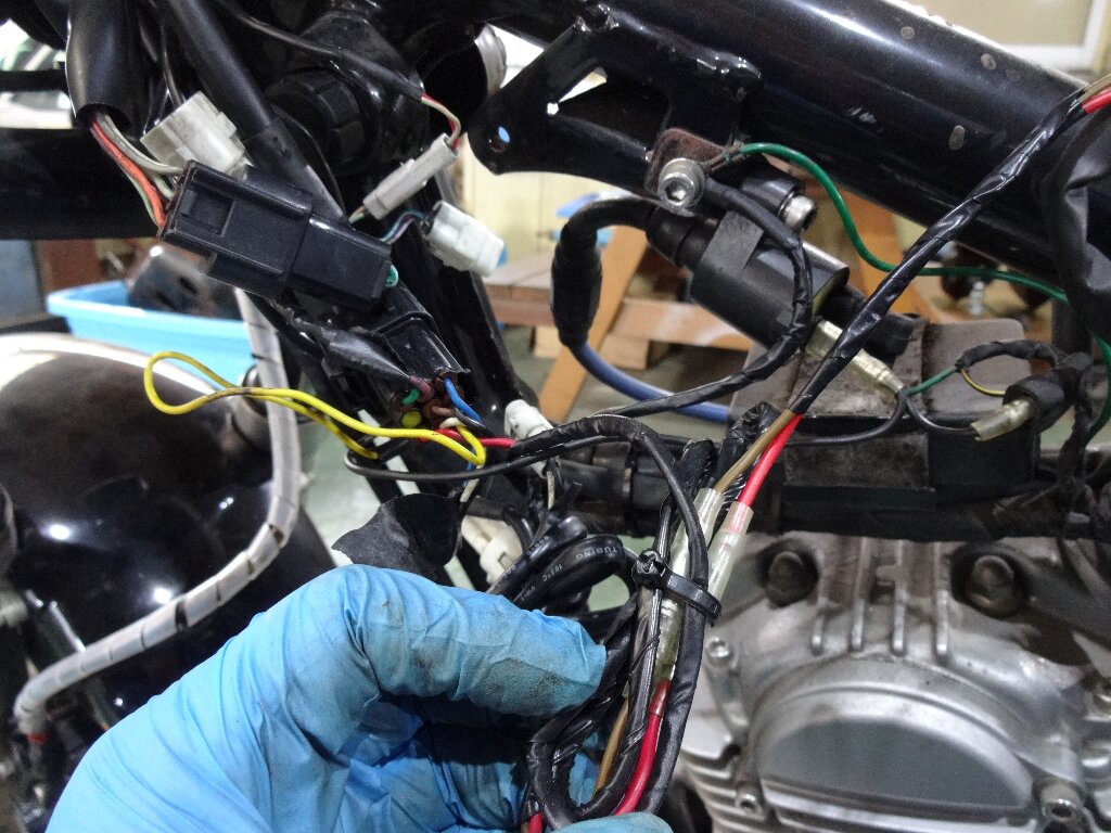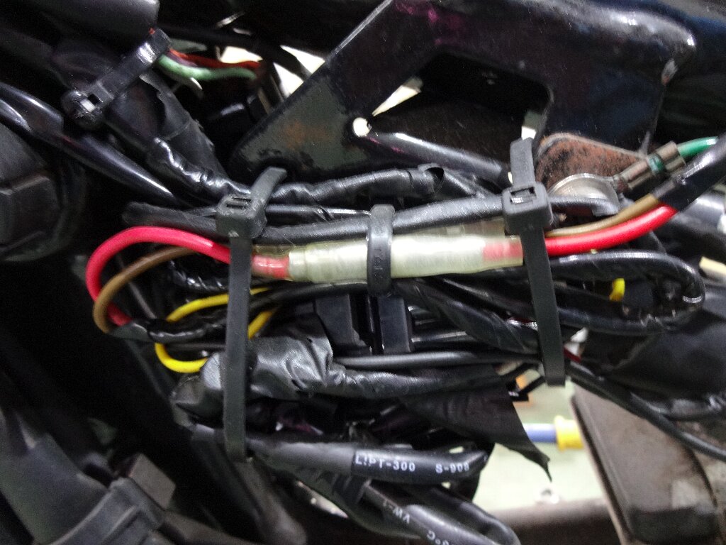 バラしてみると、純正ハーネスに戻せるような加工してる部分と、分岐して割り込ませてる様なところがありましたが、概ね丁寧に加工された形跡があります。ヤッパリこのバイク組んだのはプロの方もしくはワタシより遥かにスキルがある方だと見受けられます。