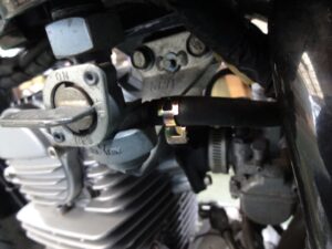 メーターから生えてるケーブルがタンク下でトグロ巻いてました。タンクの割れ目の狭間にきちんと収まる様、きちんとまとめられてました。
