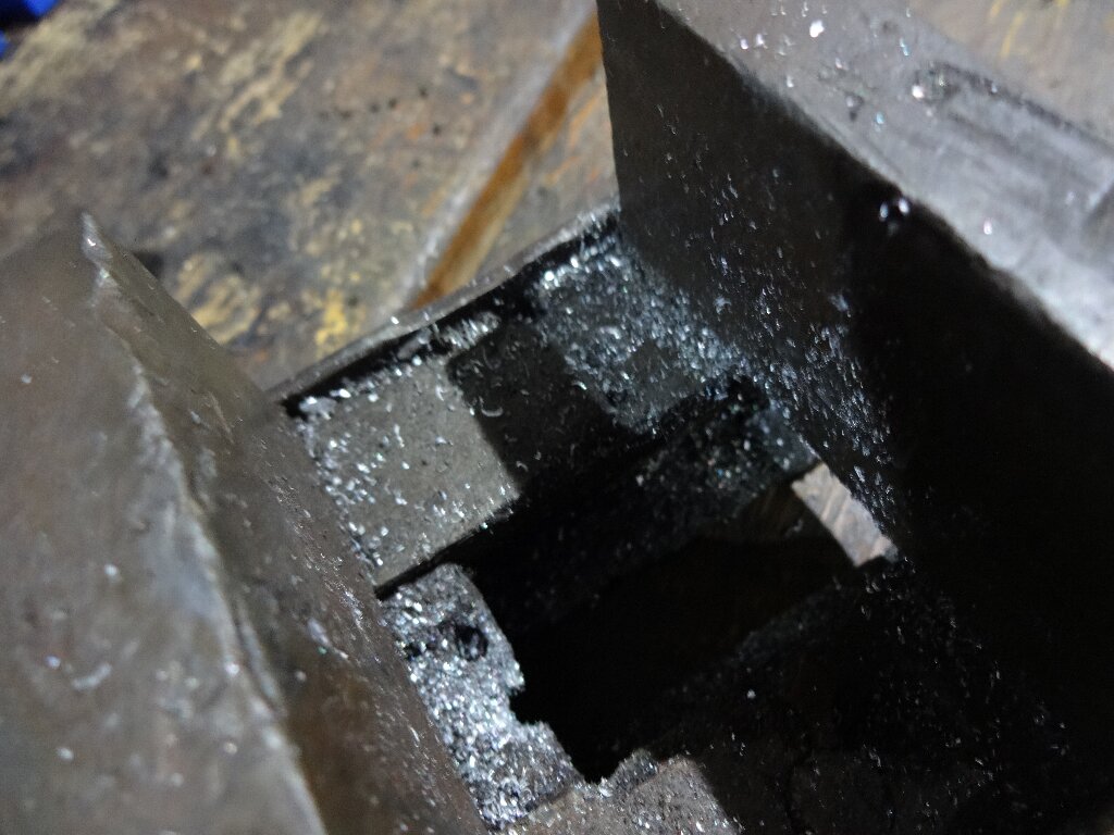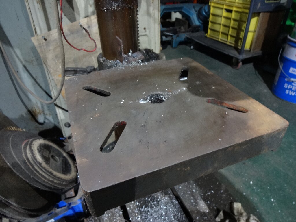 という訳で、ボール盤のテーブルの切粉を掃除してセットします。