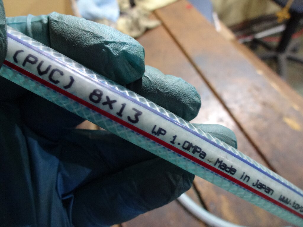 内径8ミリの糸入りホースが見当たらなかったので、今回は細切れのホース繋いで対処する事にしました。