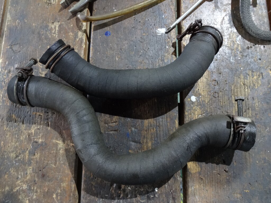 シリコンホースも買ってたのですが、一応コレも使えるかな?と思って試しに取り付けてみましたが、どうも硬化気味でバンドで締めてもイマイチな感じでした。やっぱりシリコンホースに交換するかな、、、