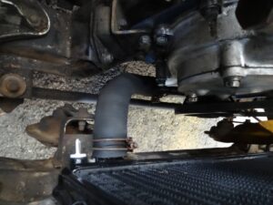 そして車体に取り付けてからラジエターとホースを接続しました。