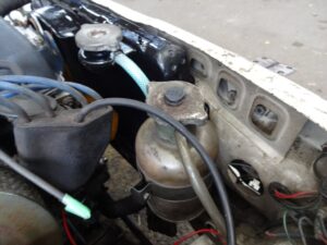 そしてリザーバータンクを取り付けるのですが、劣化したホースは外してしまって、先ほどのホースジョイント使って短いホースをつなぎ合わせて交換しました。ナゼか?継いで装着した後の写真が無い。。。