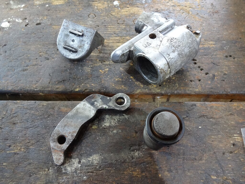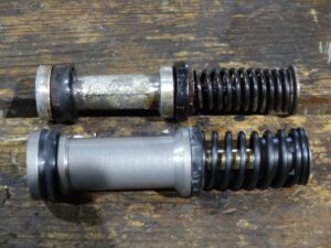 保管場所に戻って来て先日バラしたホイールシリンダーを軽く清掃しました。
