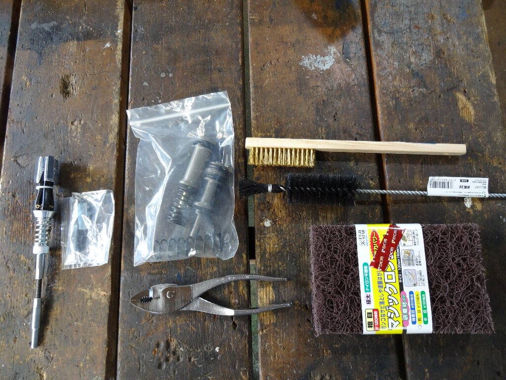 上2つはマスターシリンダー研磨に使えれば、下のブロック状のやすりはガソリンタンクの錆取り用にとホームセンターで買って来ました。