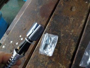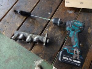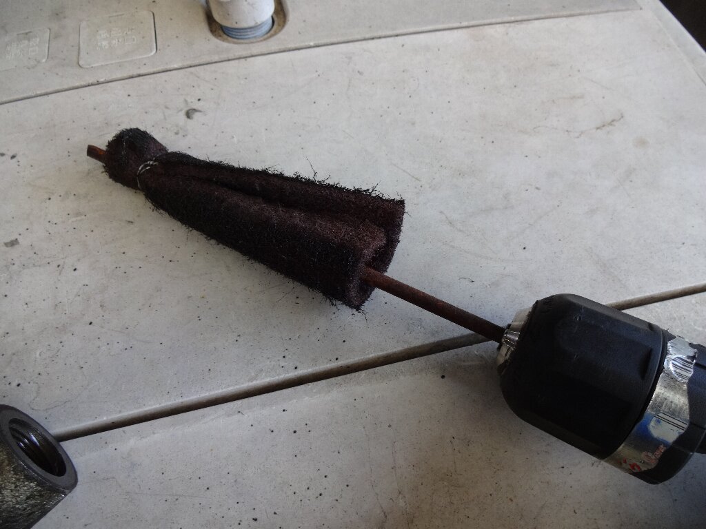 とりあえずブラシの柄先端の部分をカットしてドリルチャックで咥えて掃除しました。