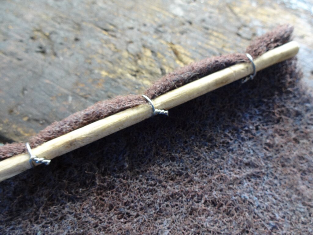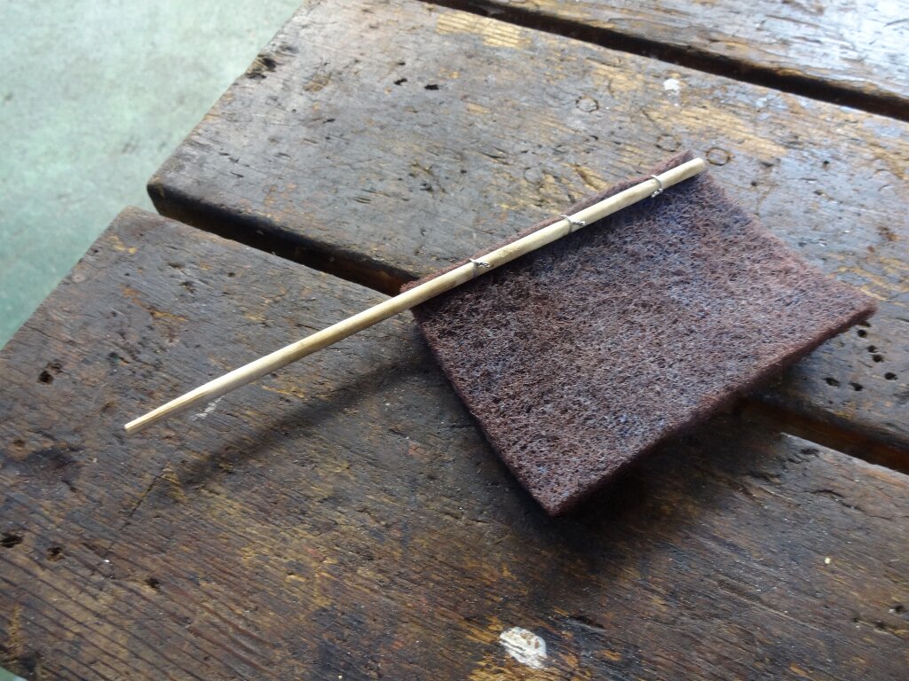 仕方無いので鉄の丸棒に遊ばない様にステンレスワイヤーでシッカリ縛り付けて研磨に使いました。