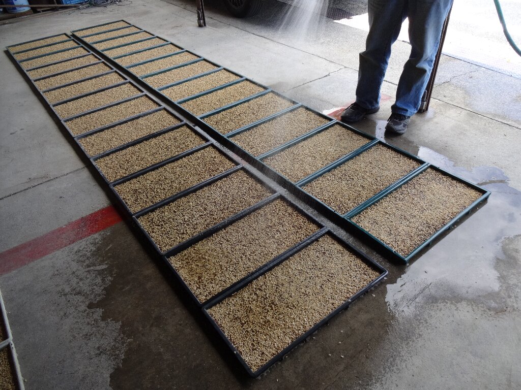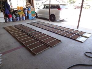 お義兄さんと甥っ子が苗代にセットしに行ってる間にガレージは年に一度の水洗い大掃除です。