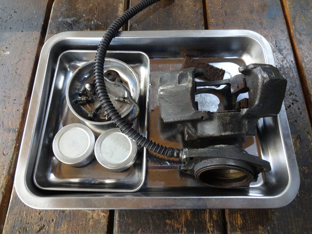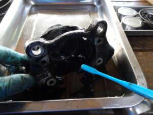 キャリパー内部やホース内は掃除してたのですが、ボディ自体は汚れたままだったので、灯油使って歯ブラシで擦って洗いました。
