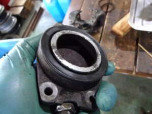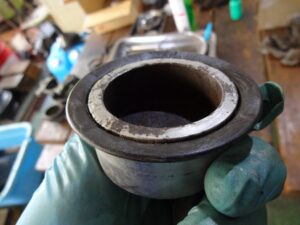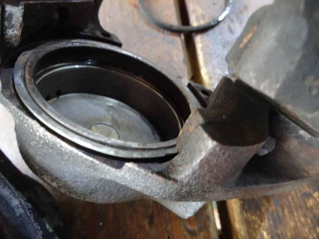 そしてキャリパー側のリップにダストシールのミミを入れ込みました。念の為、ダストシール裏側にはシルコングリス入れときましたが、今時みたいにワイヤーでの押さえとかありません。