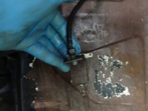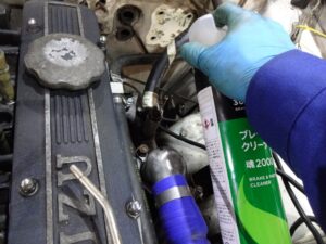 マスターバックからブレーキに行く配管も同様に、パーツクリーナーとダスターで掃除します。